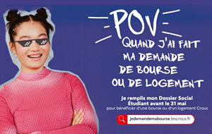 La campagne de demande de bourse et/ou de logement auprès du Crous pour l'année 2026-2027 est ouverte jusqu'au 31 mai 2026. Les demandes doivent être formulées par l'intermédiaire du Dossier social étudiant (DSE).